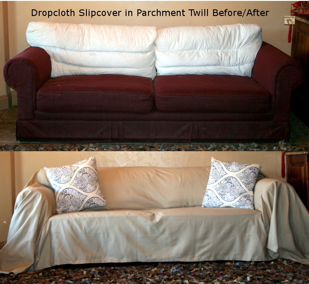 The third category is "everything else". For this category, "Brand X" created the dropcloth slipcover. This type of slipcover is like a big piece of fabric that drapes over the sofa. It is easy to install and looks great! Of course, the dropcloth slipcover works well for the t-cushion or square cushion type of sofas as well.